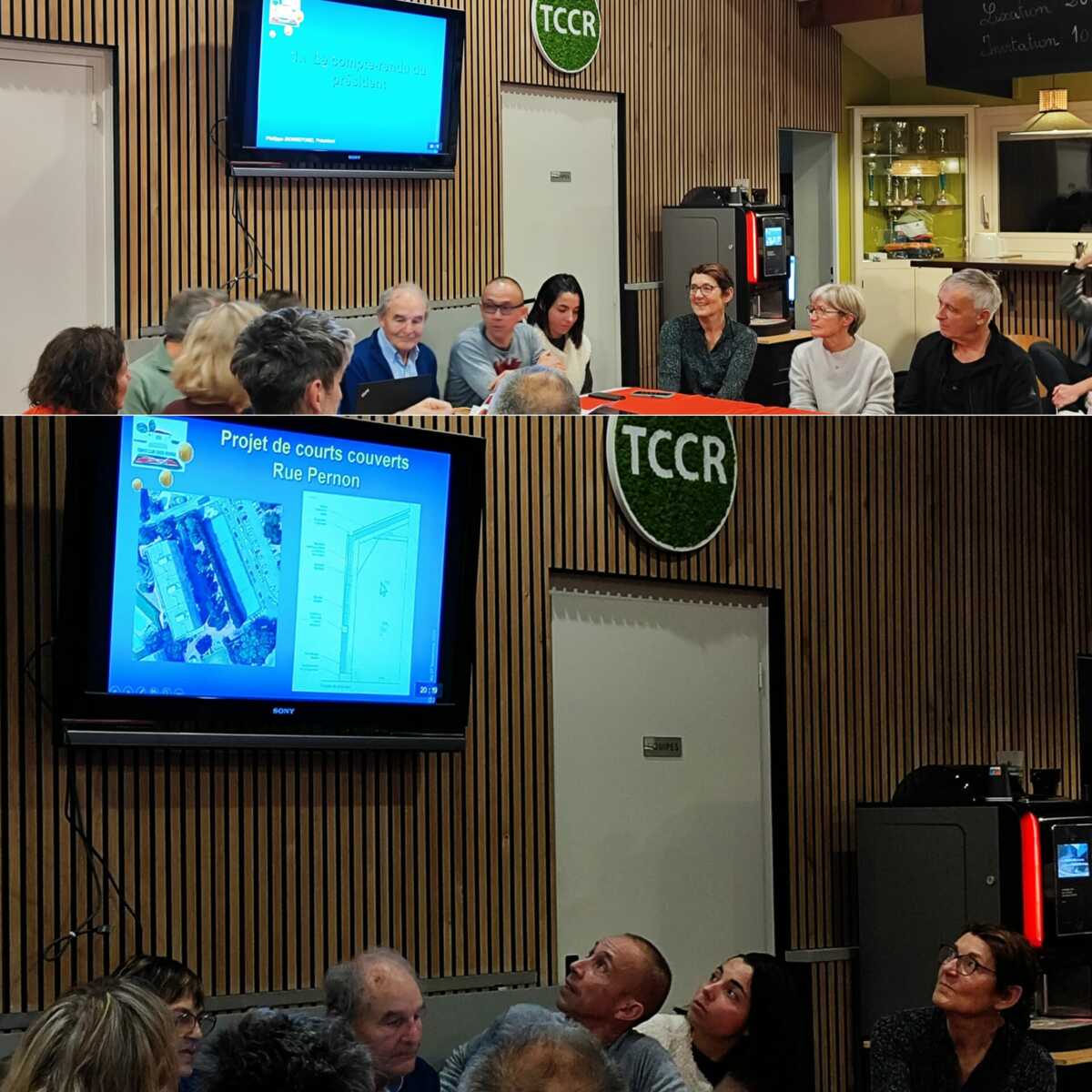 Une fois les bilans de la saison écoulée votés, le point d’orgue de cette soirée a été l’annonce officielle du lancement du projet de faisabilité de la couverture des courts 5 & 6 en partenariat avec la Direction des Sports de la Ville de Lyon. Nous en sommes aux prémices, mais les premiers jalons sont plantés, nous vous tiendrons informés de la suite………..