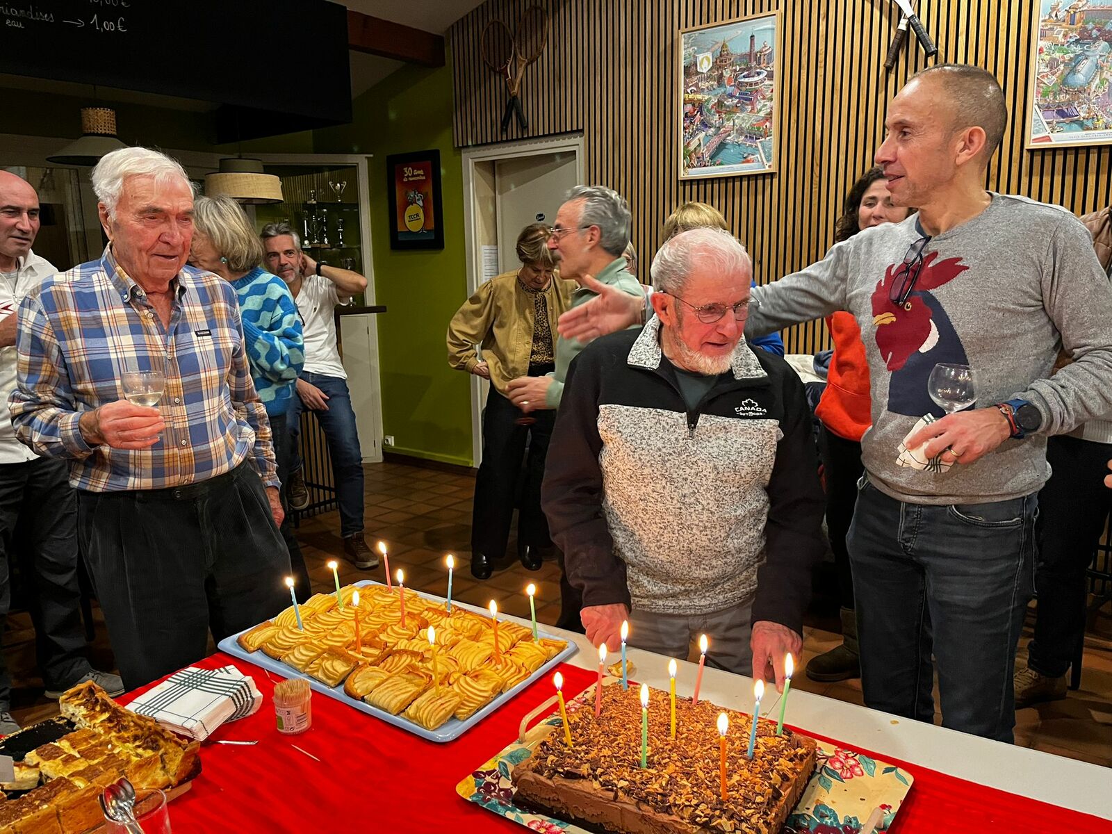 Les anniversaires se sont ensuite enchainés avec nos doyens Gérard et Pierre, 90 ans, fidèles aux mardis, jeudis matin, qu’un gâteau « maison » attendait et qui a régalé l’assemblée.